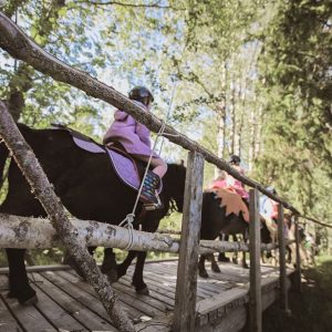 Voit myös tiedustella ryhmäretkiä vakituisten retkiaikojen ulkopuolelle. Ryhmäretken minimikoko on neljä (4) lasta ratsain. Hoksaa retken tunnelman muutos päivänvalolla ja tunnelmavalaistuna hämärällä! (Huom! Kesällä on valoisaa kellon ympäri, jolloin valaistus on pois käytöstä)